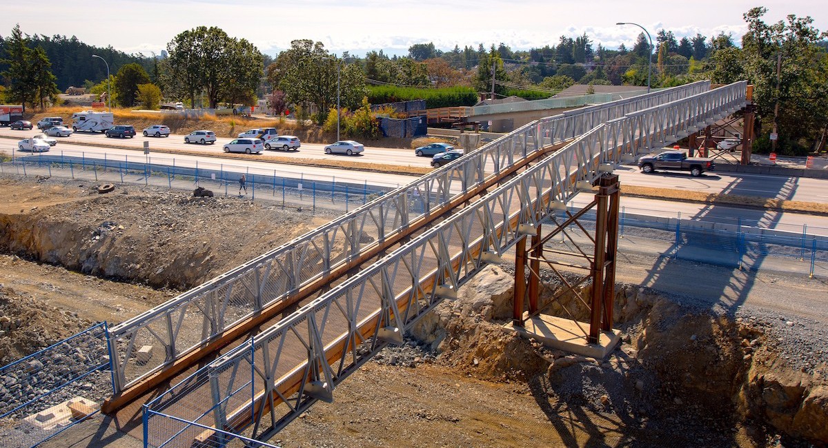 Dans la phase 1 de ce projet du ministère des Transports et de l’Infrastructure de la Colombie-Britannique (MTI CB), un pont pour piétons et cyclistes existant est démoli et un pont temporaire plus long est installé pour traverser le plus vaste emplacement. Les partenaires du projet ont choisi une solution de location économique des Ponts Algonquin : le populaire système de pont modulaire à panneaux Algonquin.